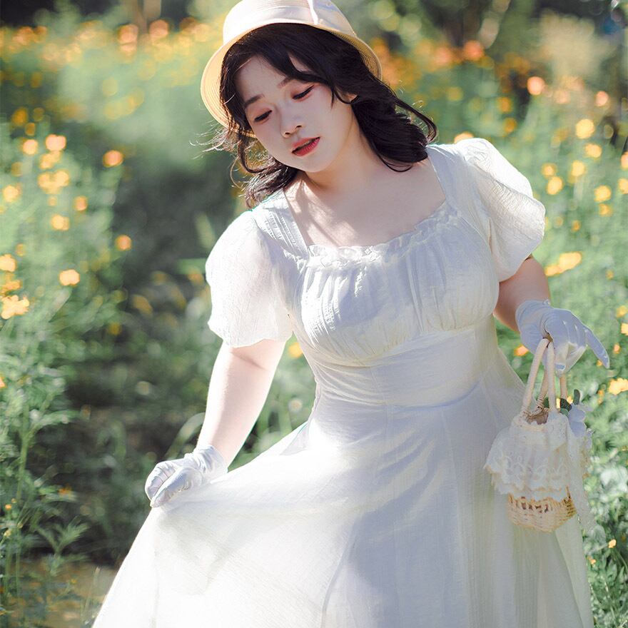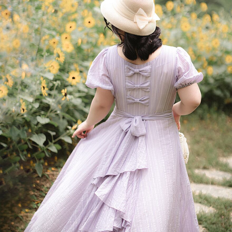 SEASONZ フレアワンピース バックリボン パフスリーブ 清楚 上品 Forestシリーズ クラロリ 原宿スタイル