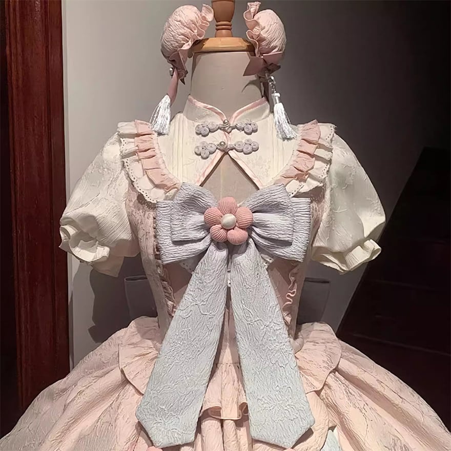 SEASONZ 中華風ワンピース チャイナ風 リボン お花 フリル クラロリ 原宿スタイル