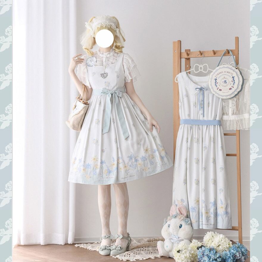 SEASONZ ジャンスカ ワンピース 花柄 清楚 百合 クラロリ 控えめ レトロ 量産型 原宿スタイル