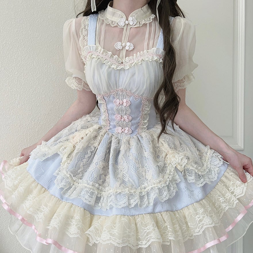 SEASONZ ジャンスカ ワンピース レース ドレス チャイナ風 中華風 夢かわいい ガーリー 原宿スタイル
