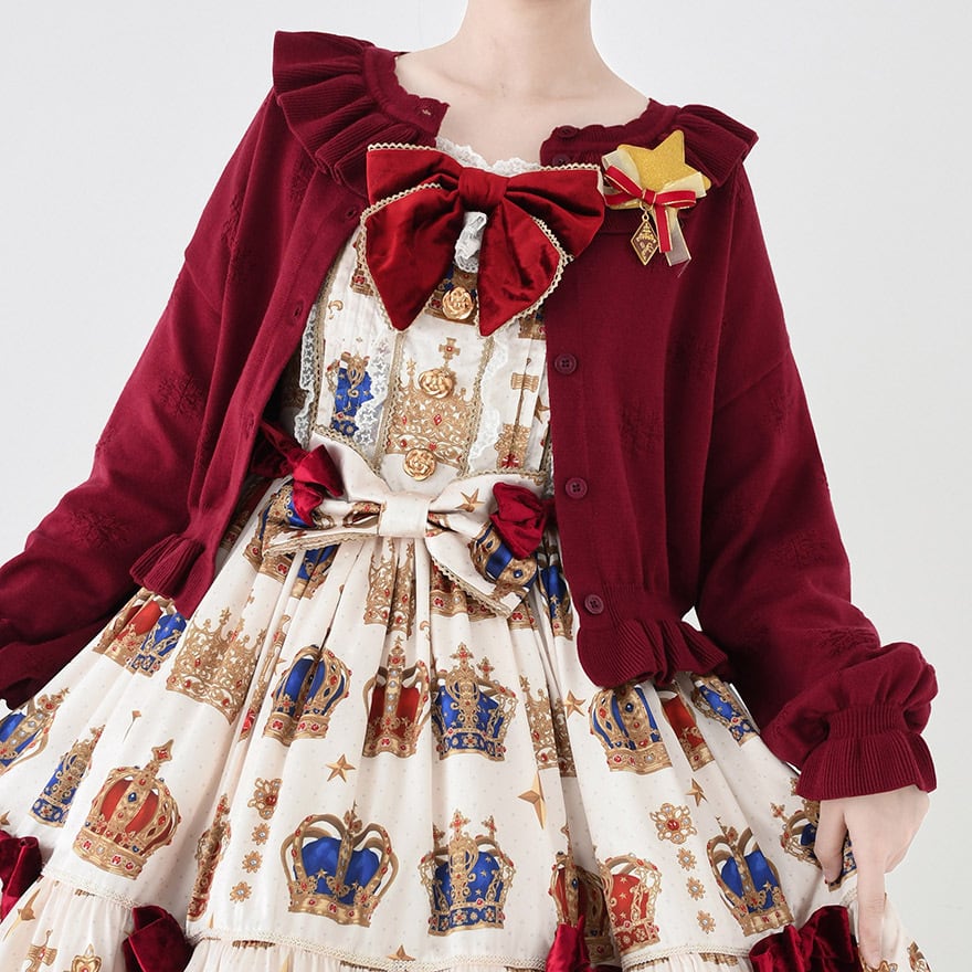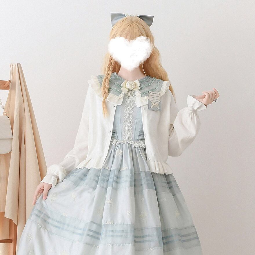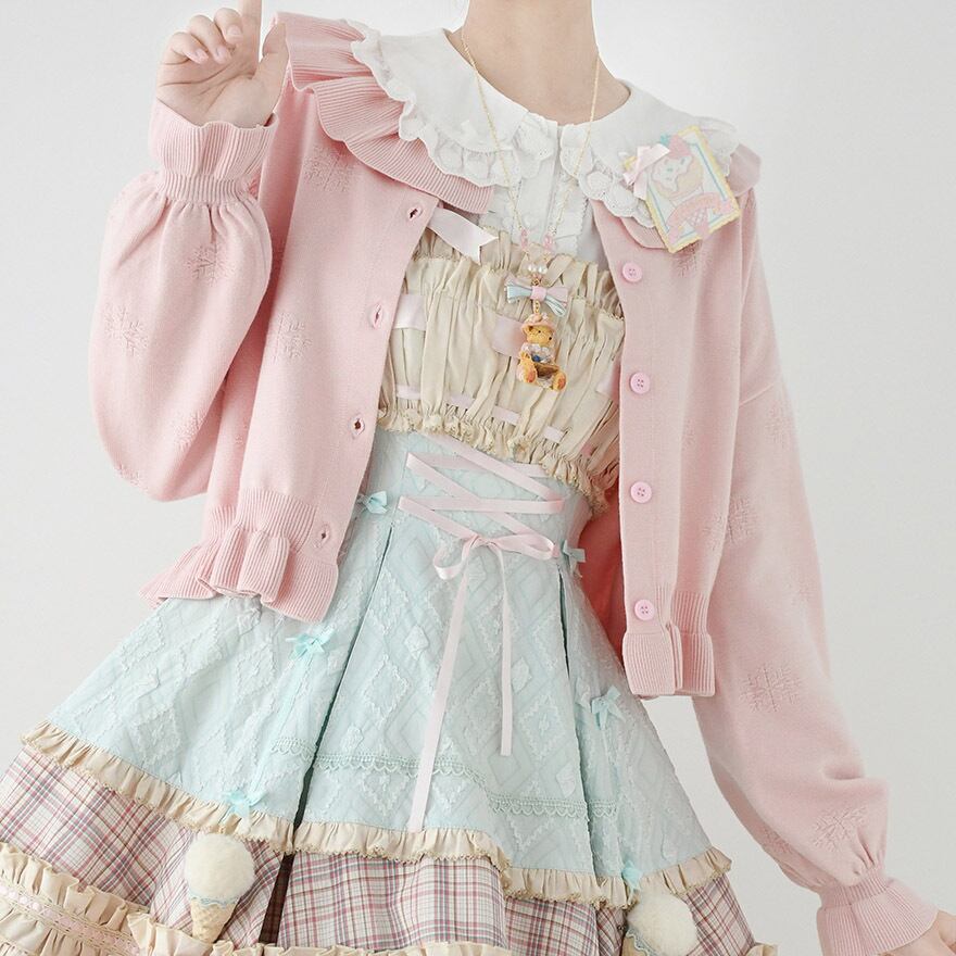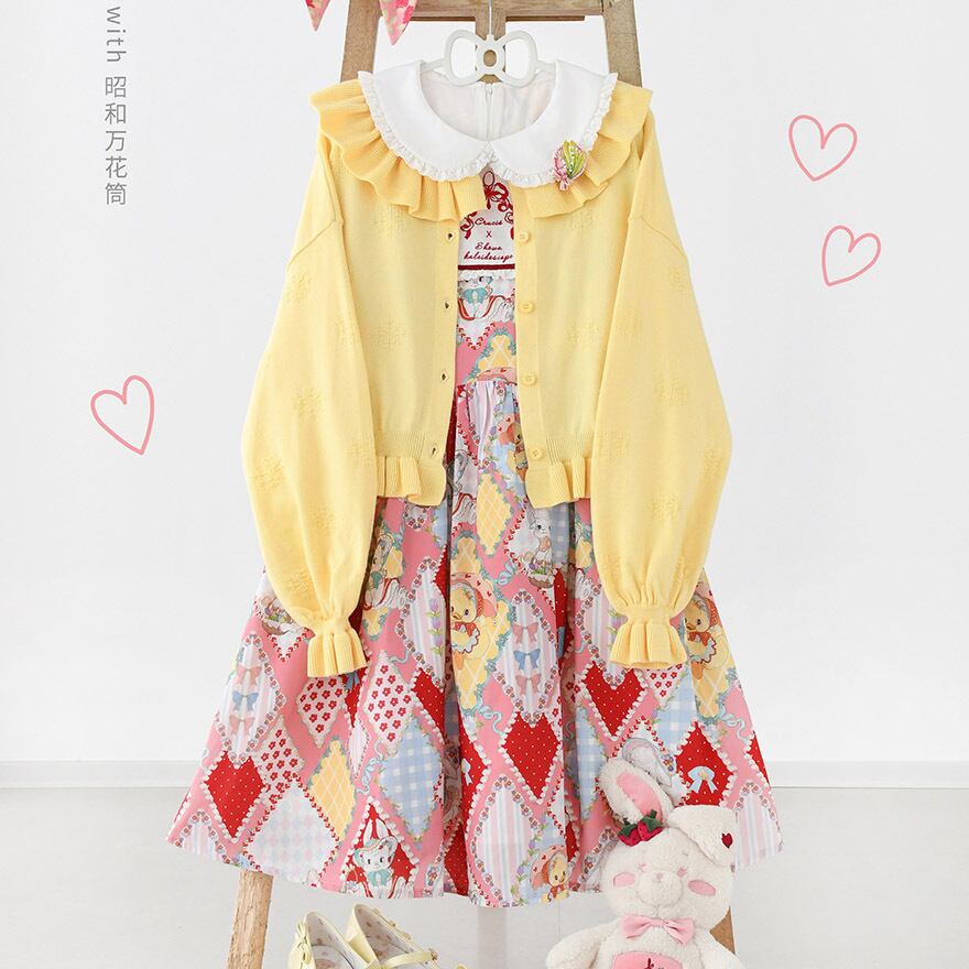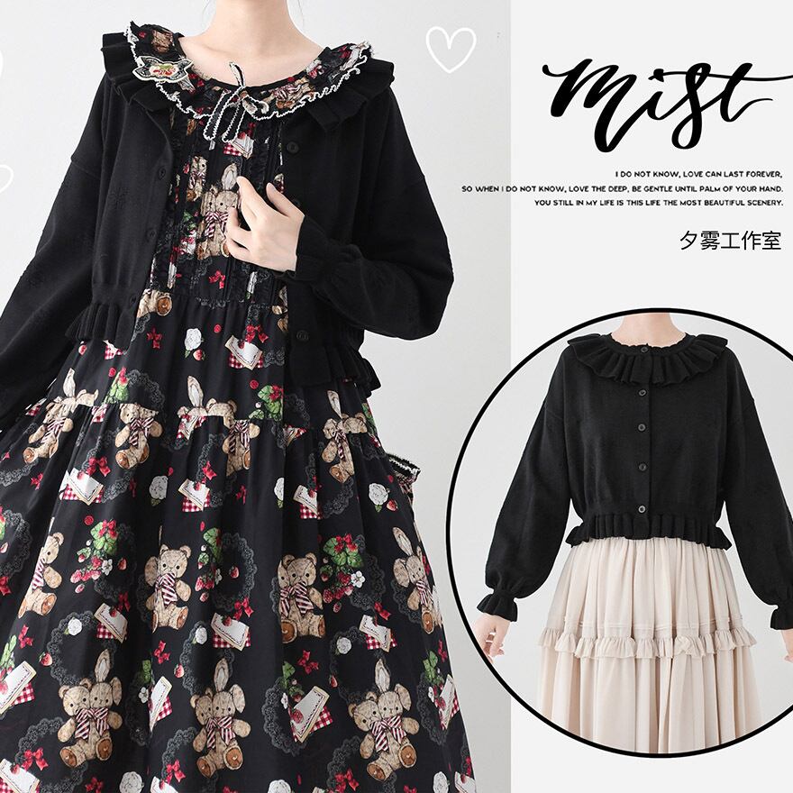 SEASONZ ニット カーディガン 長袖 ボタン 羽織り フリル襟 クラロリ ガーリー かわいい 原宿スタイル