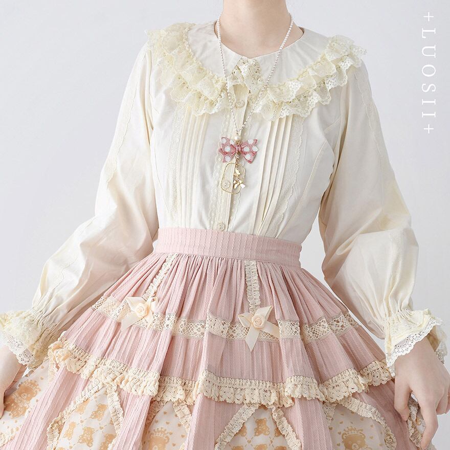 SEASONZ 長袖ブラウス トップス ボタン レース襟 ピンタック フリル レース クラロリ ガーリー かわいい 原宿スタイル