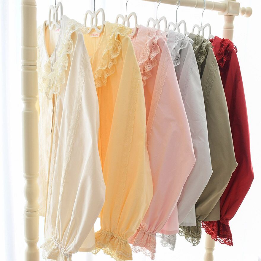レース襟と袖が可愛い長袖ブラウスです。