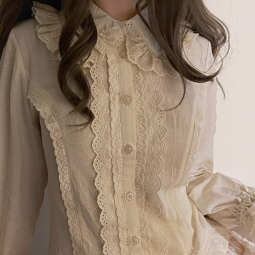 SEASONZ 長袖ブラウス シャツ クラシカル 清楚 クラロリ レース ガーリー かわいい 原宿スタイル