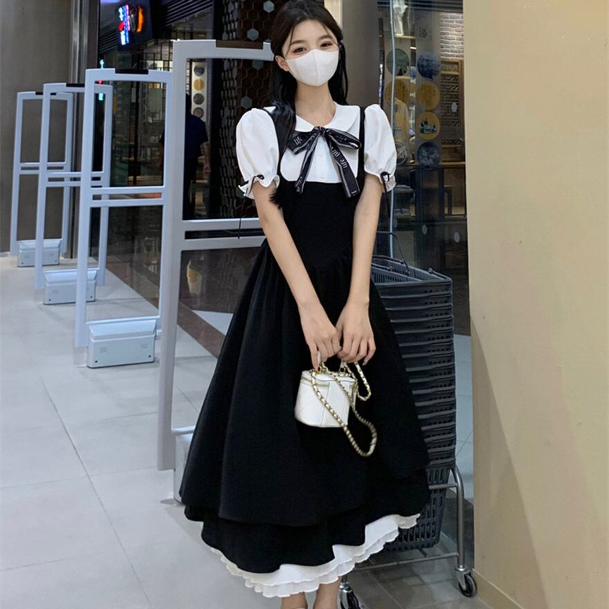 SEASONZ 半袖ブラウス ワンピース ジャンスカ ツーピース ロング丈 ミニ丈 クラロリ ガーリー JKロリータ 普段使い かわいい 原宿スタイル