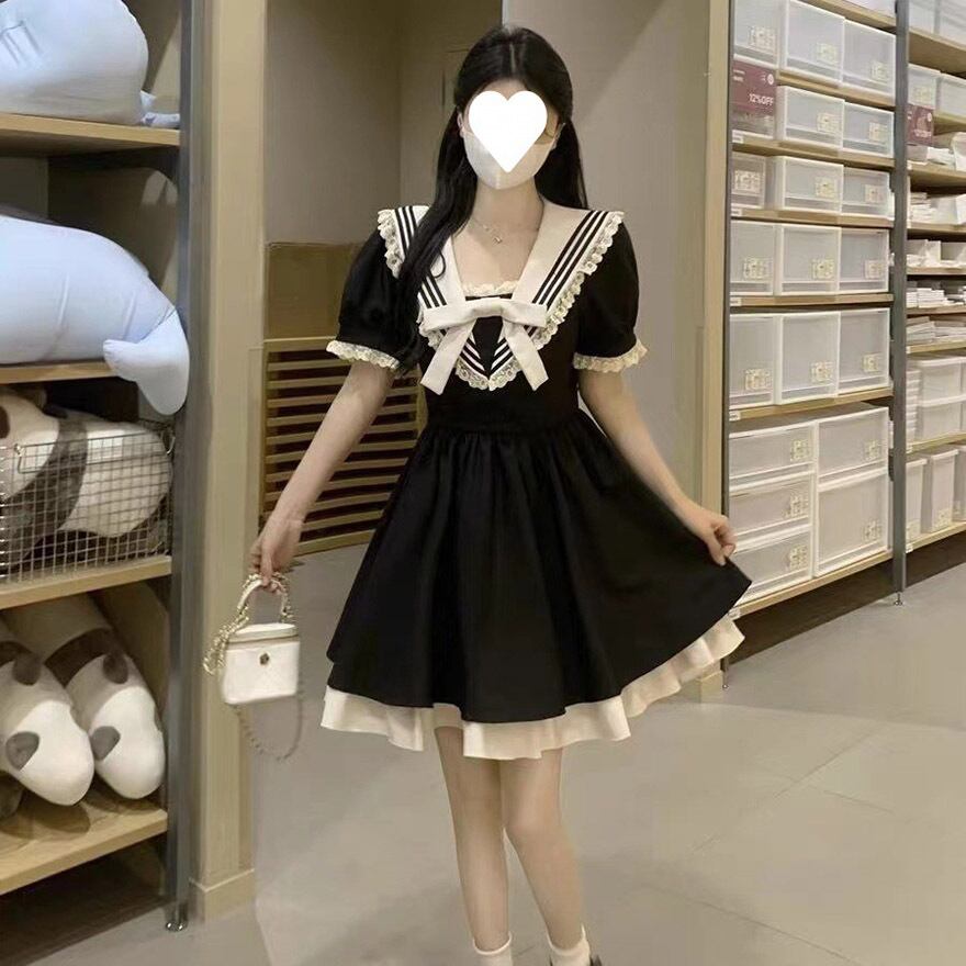 SEASONZ ワンピース リボン セーラー襟 レース 半袖 クラロリ セーラーワンピ ガーリー かわいい 原宿スタイル