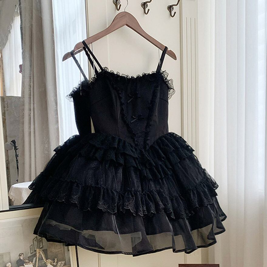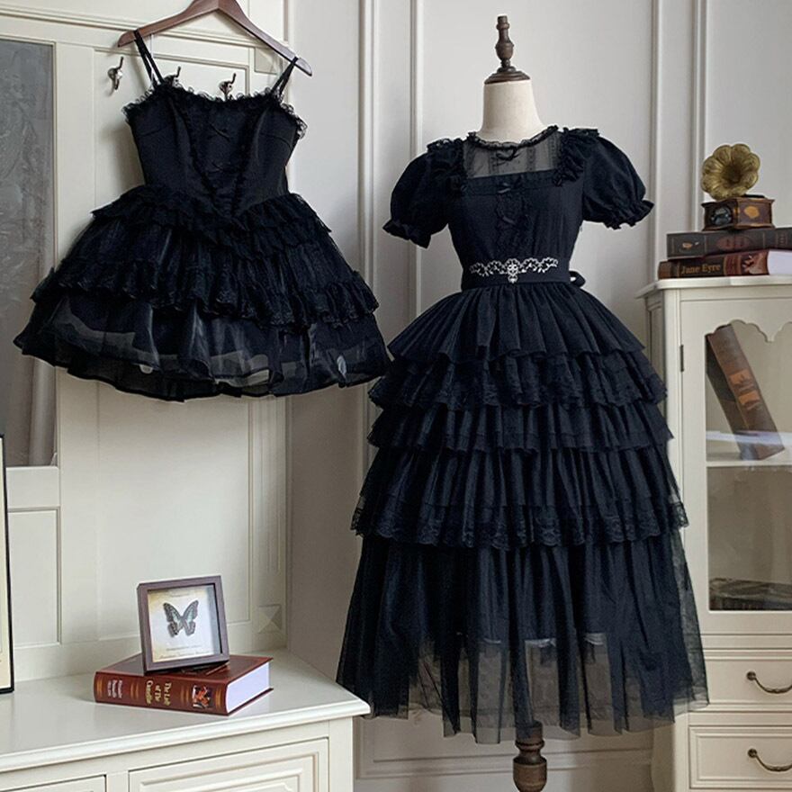 SEASONZ ジャンスカ キャミソール レースアップ ミニ丈 レース 透け感 ゴスロリ ダークゴシック 病みかわいい 原宿スタイル