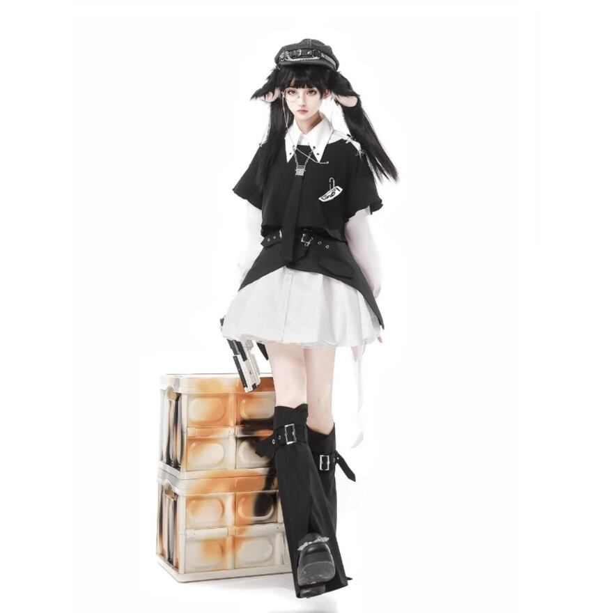 SEASONZ サイバーパンク ダークゴシック 4点セット トップス スカート ワンピース レッグウォーマー アニメ風 原宿スタイル コスプレ 概念コーデ