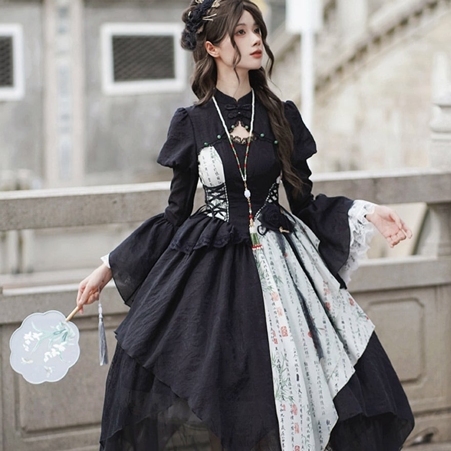 SEASONZ 半袖ワンピース ドレス イレギュラーヘム 透け感 アシンメトリー 中華ロリータ 華ロリ 量産型