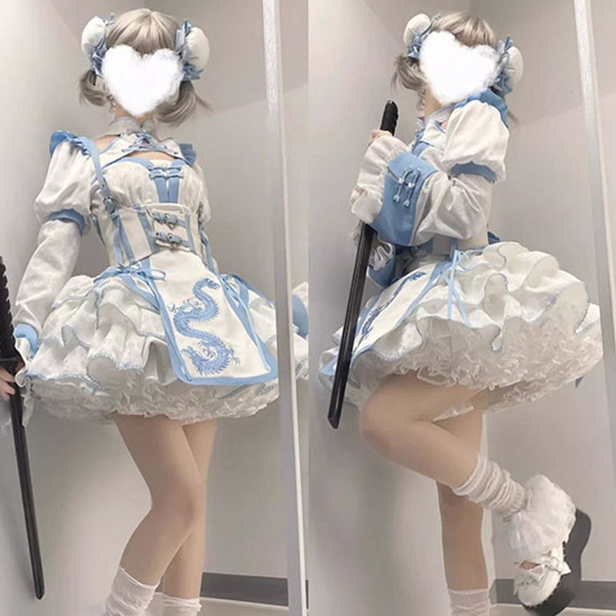 SEASONZ ワンピース ミニスカート ウエストバンド ベルト コルセット ドラゴン 刺繍 華ロリ 中華ロリータ 地雷系 コンカフェ ステージ ライブ イベント衣装