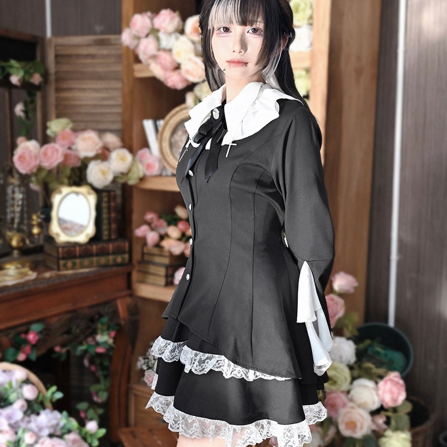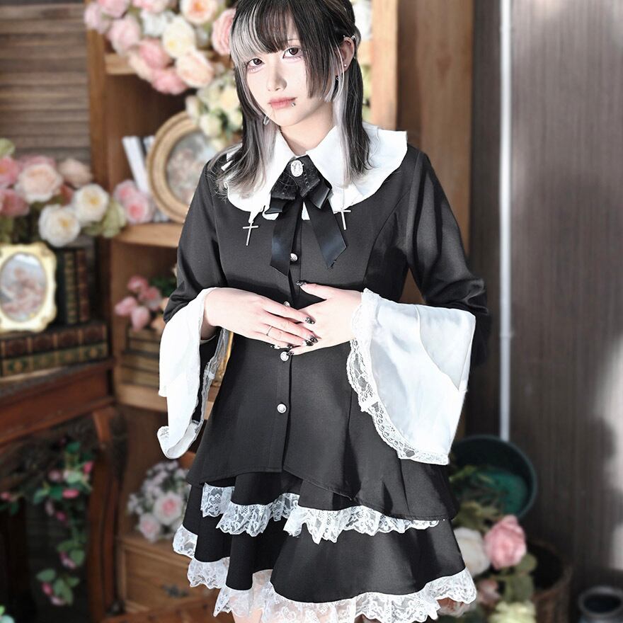 ゴシックダーク 地雷 スーツ 長袖 ミニスカート レース サブカル 闇かわいい ダークファッション ふぁっしょん 地雷