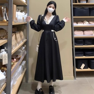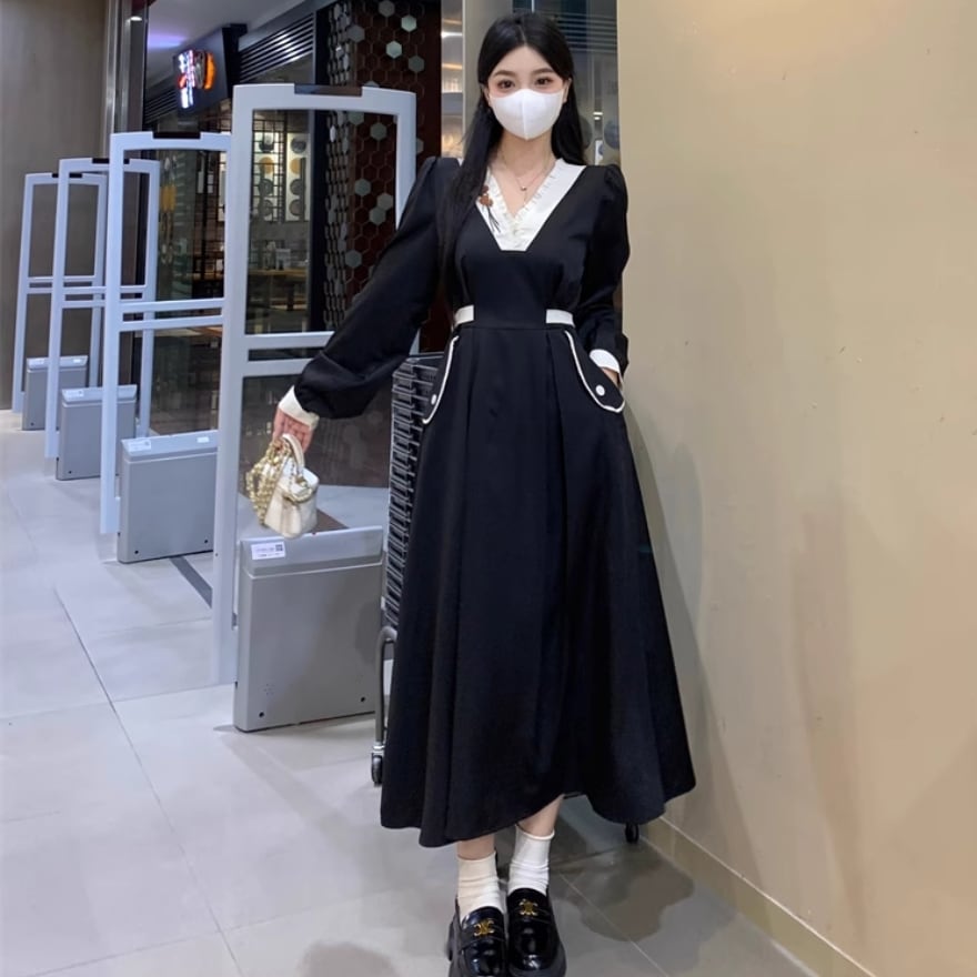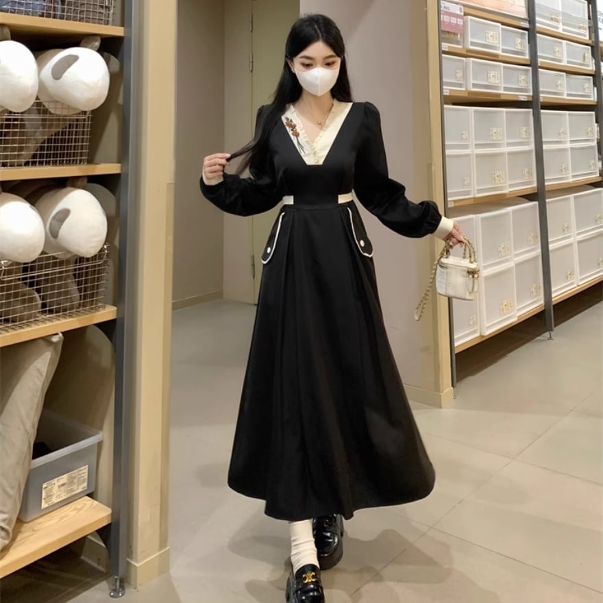 普段着使いにおすすめな控えめⅤ字ネックのロングワンピになります