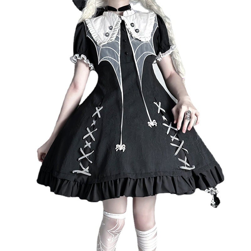 ハロウィン衣装 コスプレ 魔女 衣装 ワンピース 付け袖 レース 編み上げ イベント衣装 舞台衣装