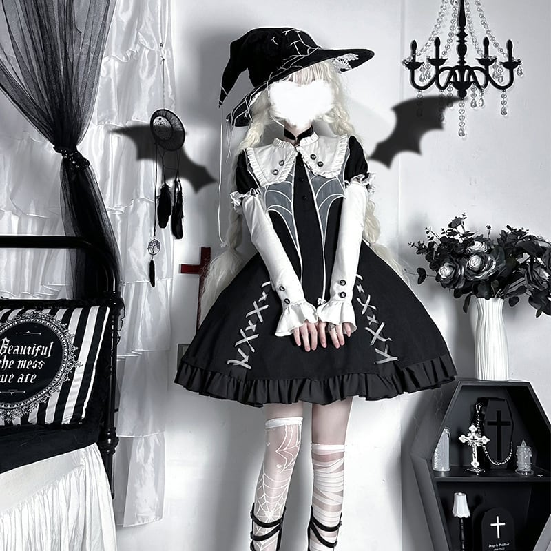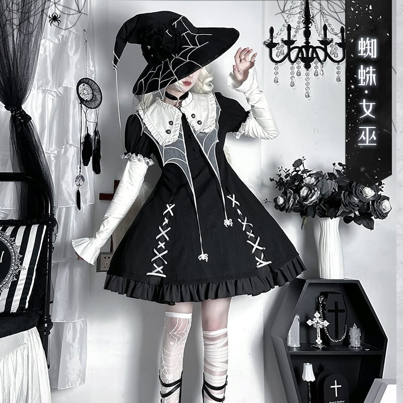 ハロウィン衣装 コスプレ 三角帽子 蜘蛛の巣 イベント衣装 舞台衣装