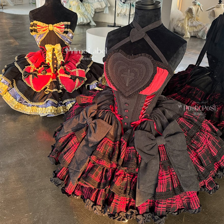ロリータドレス パーティドレス プリンセスドレス ダーク ハート リボン ゆめかわふぁっしょん パステルカラー ベビードール 量産型