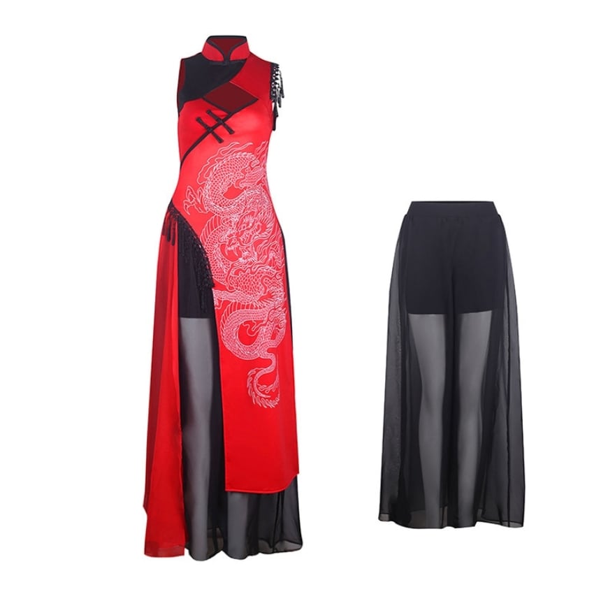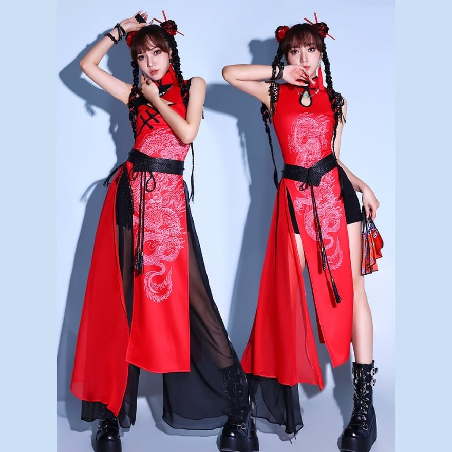 ダンス衣装 ドラゴン柄 チャイナドレス ダンス衣装 イベント ステージ衣装 舞踏