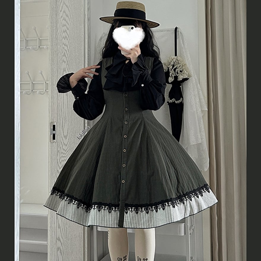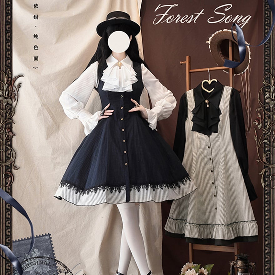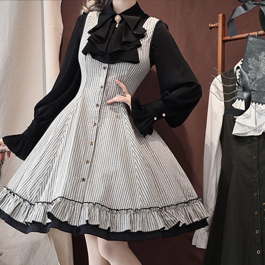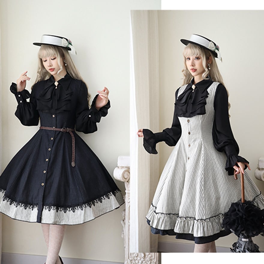 SEASONZ ワンピース ジャンスカ リバーシブル ストライプ ゴスロリ レトロ ゆめかわふぁっしょん パステルカラー ベビードール 量産型