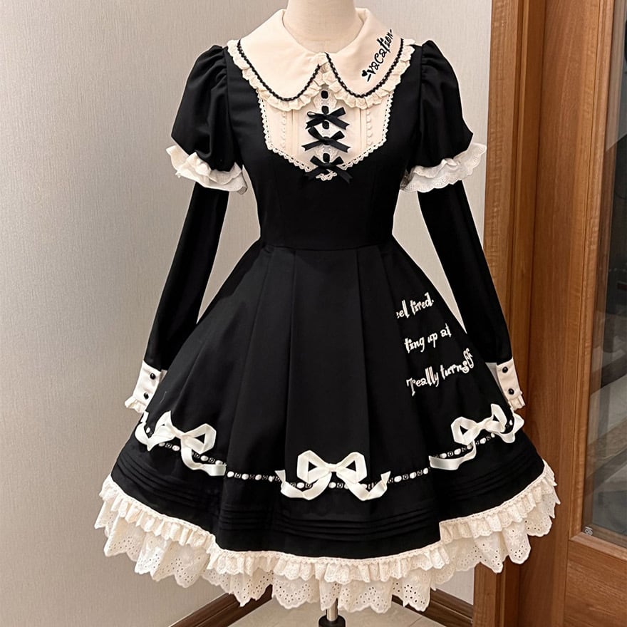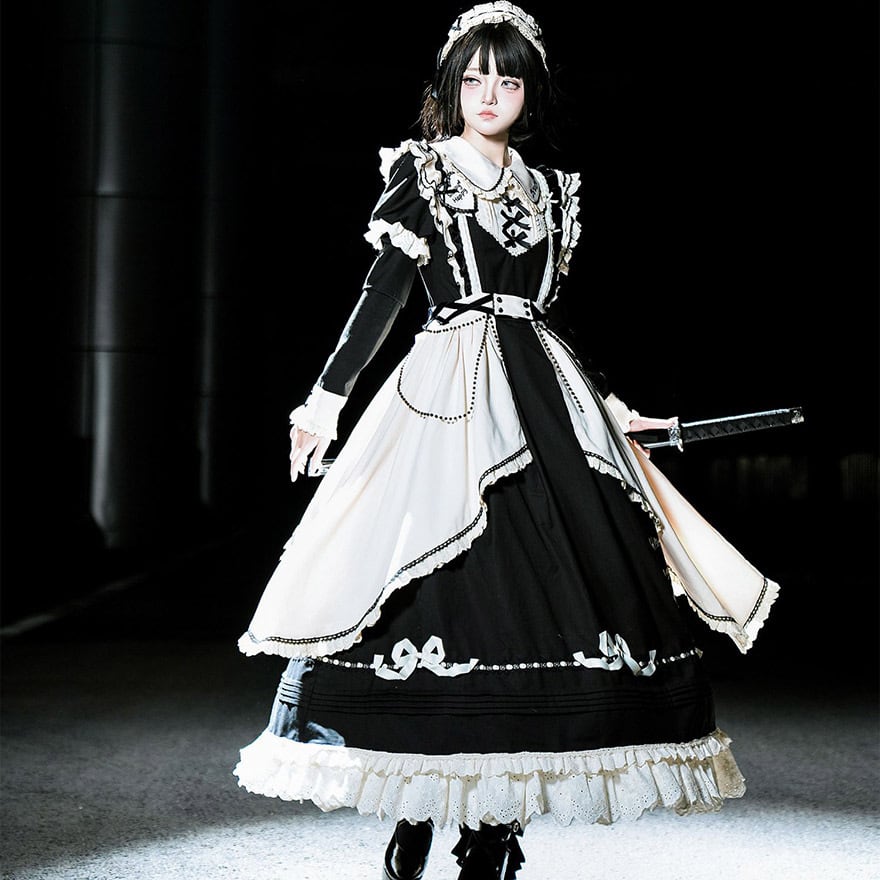 SEASONZ 地雷系 地雷女子 ゴスロリ メイドワンピ ショート丈 ロング丈 リボン フリル 長袖 イベント コスプレ衣装 舞台 ステージ衣装