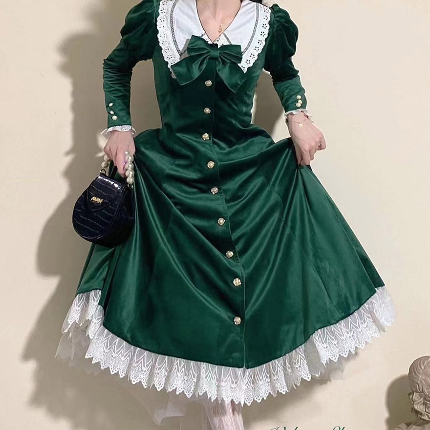 SEASONZ ワンピース ドレス クラシカル 長袖 ベルベット クラロリ エレガント 大人かわいい お出かけ お呼ばれ 量産型
