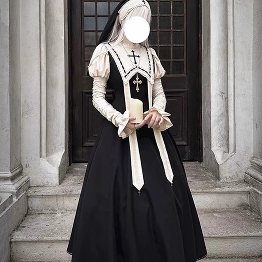 SEASONZ ワンピース シスター 長袖 エレガント 十字架 ベール付属 ゴスロリ 修道女 コスプレ イベント衣装 量産型