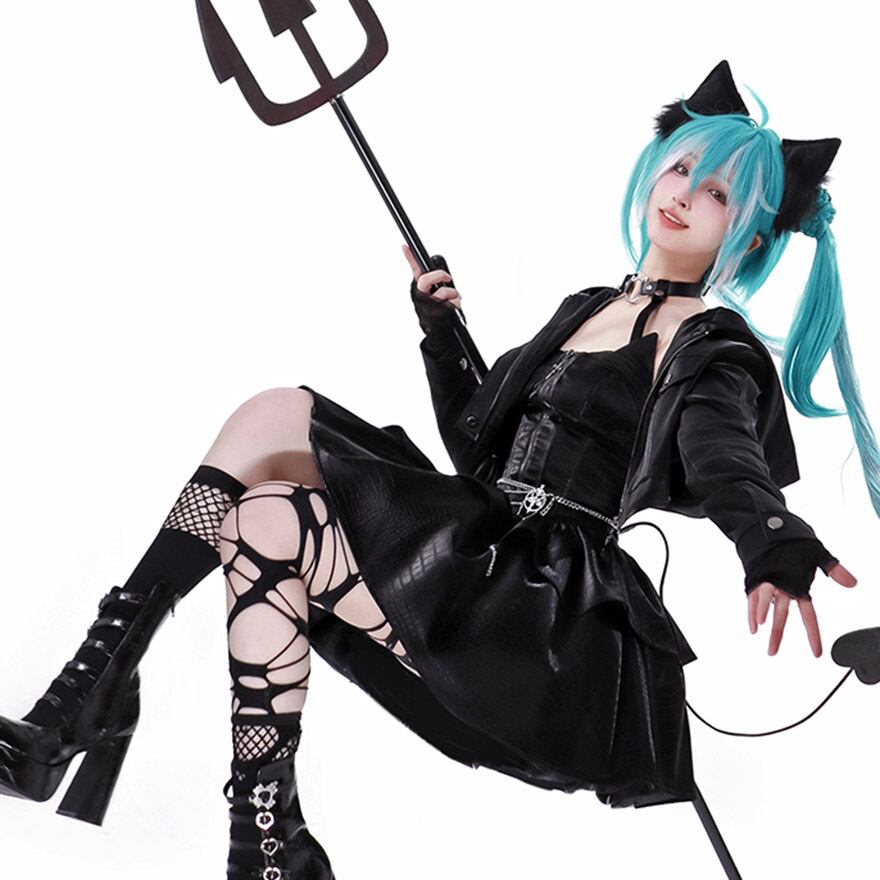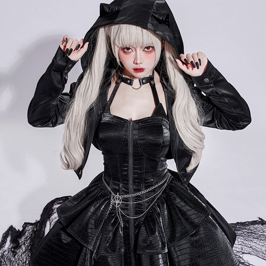 SEASONZ ワンピース ジャンスカ チョーカー ウエストベルト チェーン 猫 地雷系 ゴスロリ イベント ハロウィン デビル 魔女
