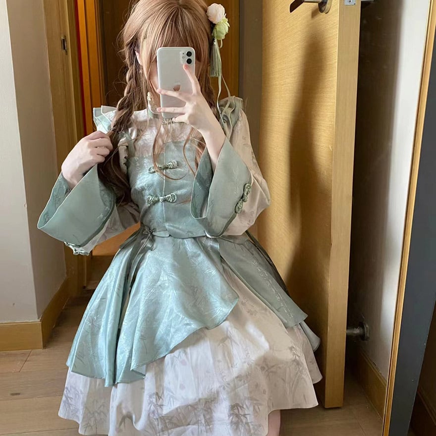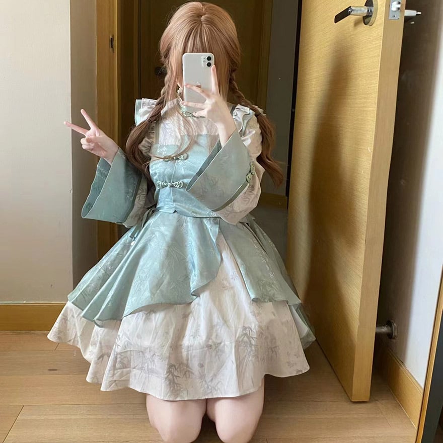 SEASONZ ワンピース ノースリーブ フリル ボリューム スタンドネック 中華ロリータ ガーリー ベビードール