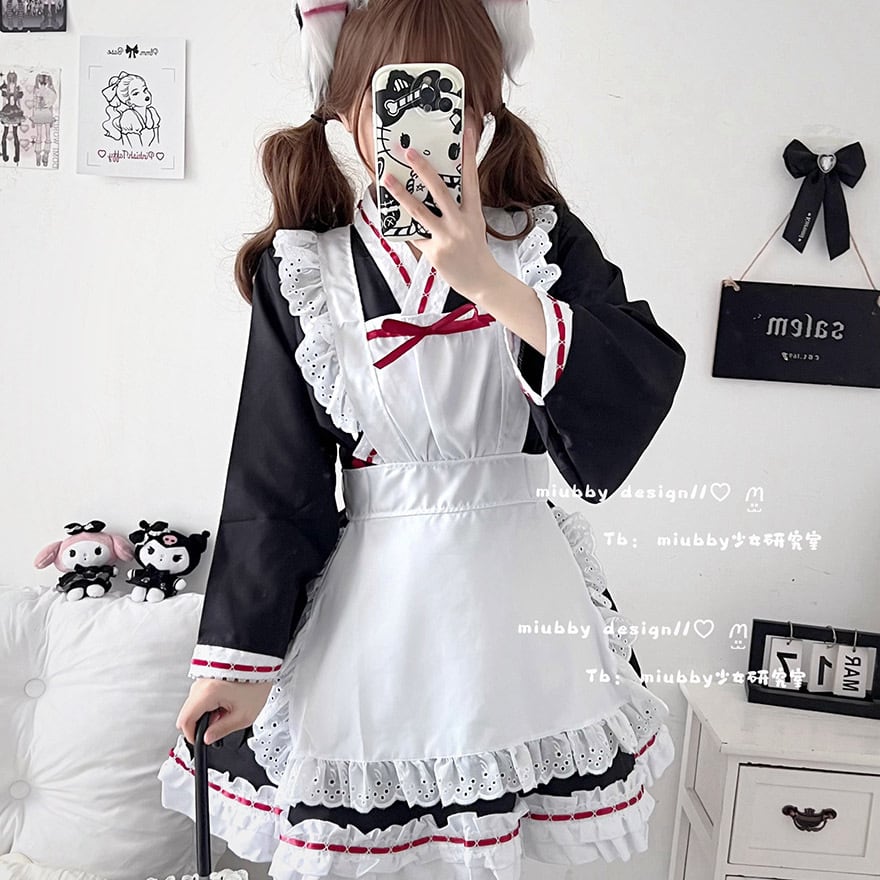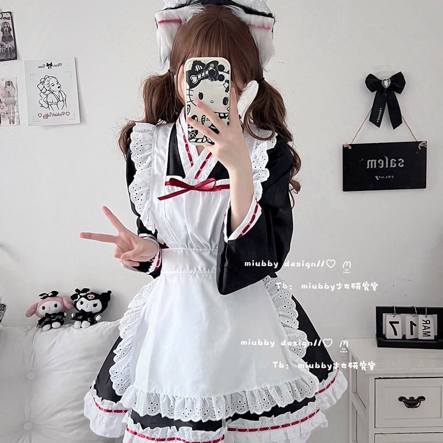 日本風のデザインが可愛い、レースたっぷりのメイド服です。