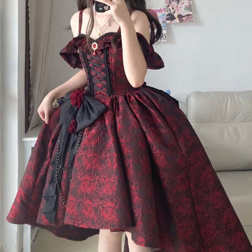 SEASONZ ワンピース フィッシュテールスカート 薔薇 花柄 オフショル 夜会 ドレス 大人増し 上品 量産型