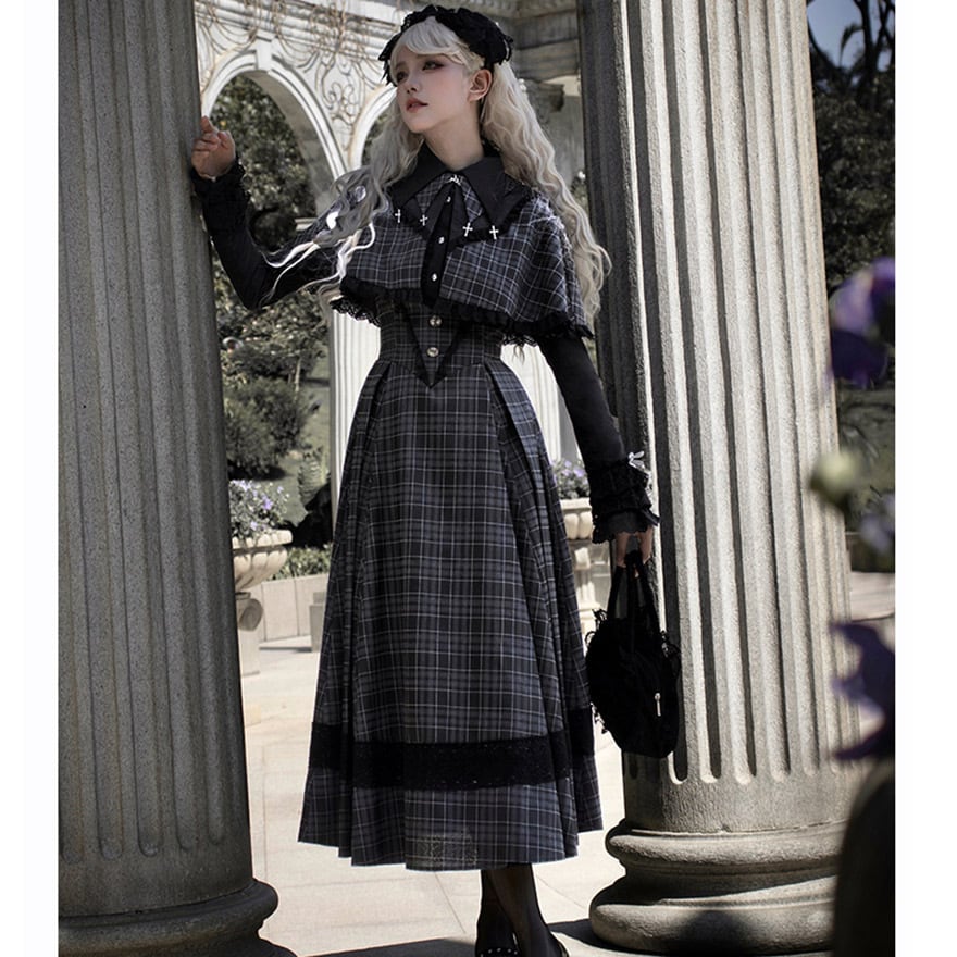 SEASONZ 11月5日 工場出荷 クラロリ ジャンスカ ワンピース レースアップ チェック柄 エレガント ダークファッション ゆめかわいい