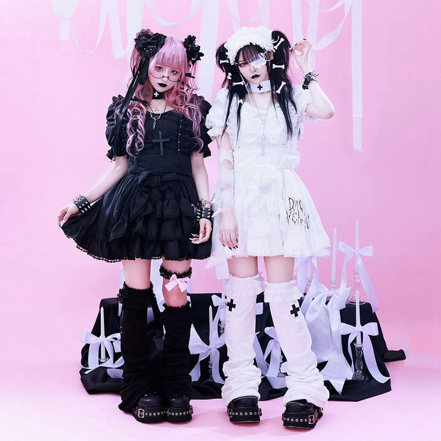 SEASONZ ゴスロリ ワンピース フリル 半袖 双子コーデ ハイウエスト ダークファッション 病みかわいい