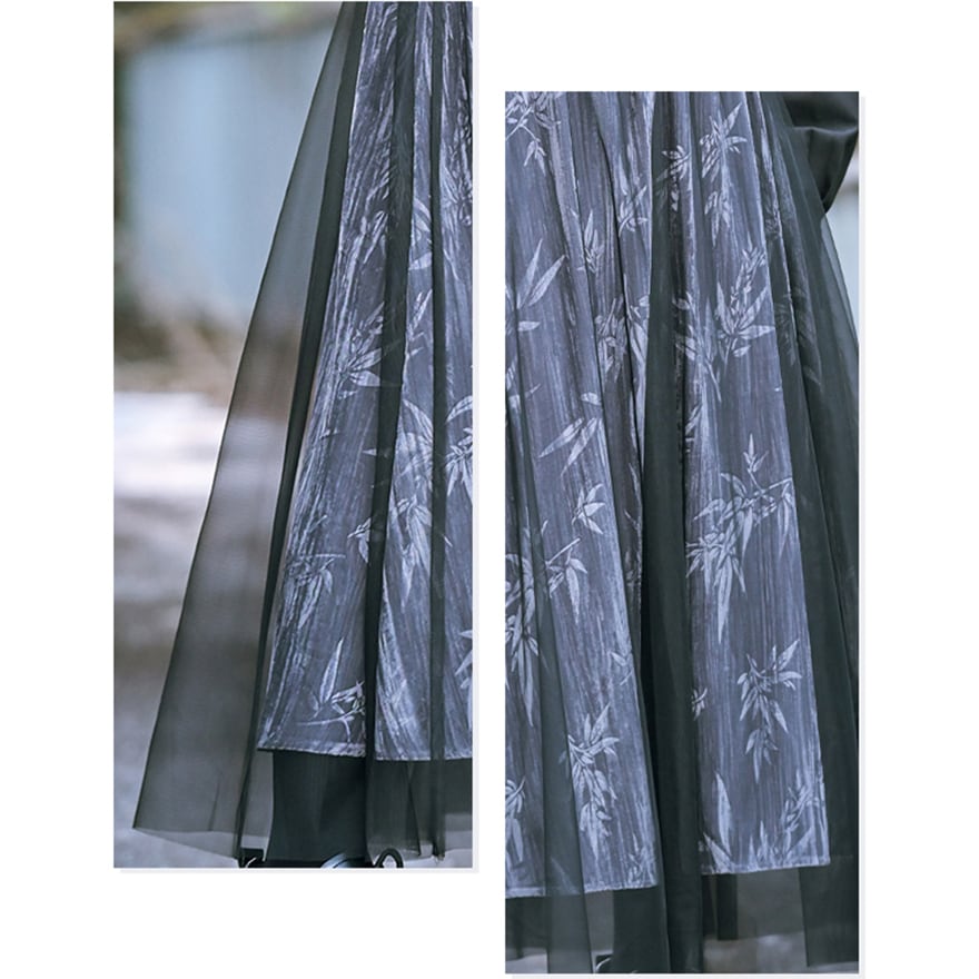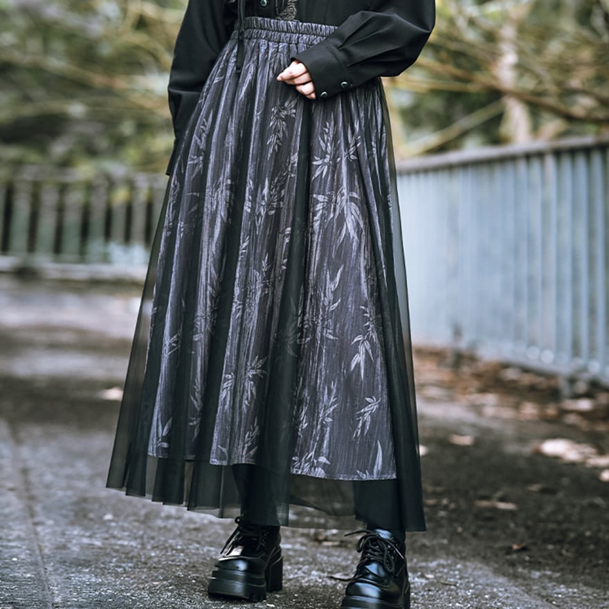 SEASONZ スカート チャイナ服 ロングスカート バンブー柄 シアー チュール ハイウエスト エレガント