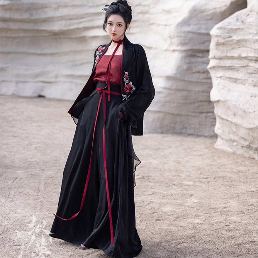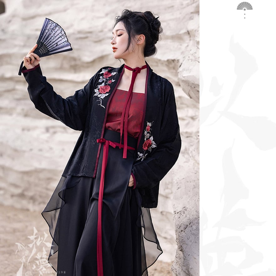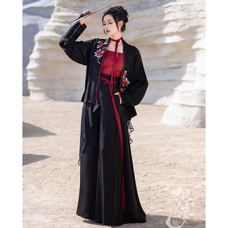 SEASONZ チャイナ服 羽織り インナー パンツ ウエストカバー 4点セットアップ エレガント 病みかわいい 地雷ファッション