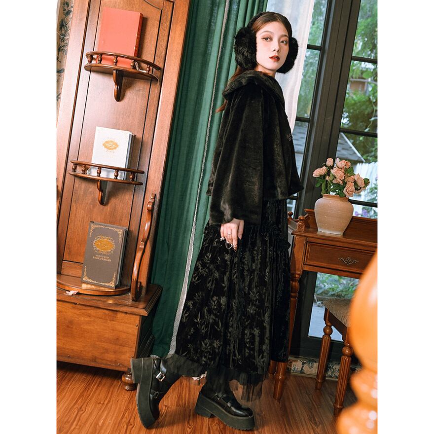 SEASONZ 古怪舎 ワンピース ベルベット 大人増し チャイナ服 ロングワンピース Aライン バンブー柄 地雷ファッション