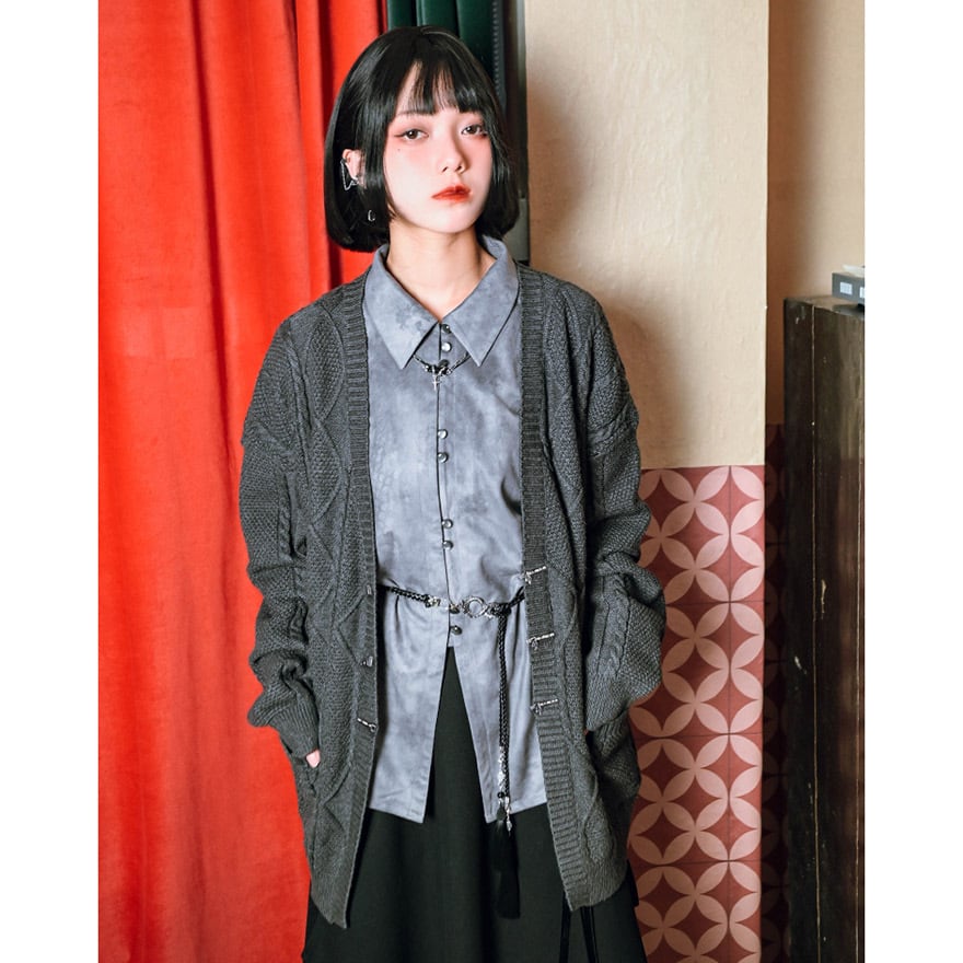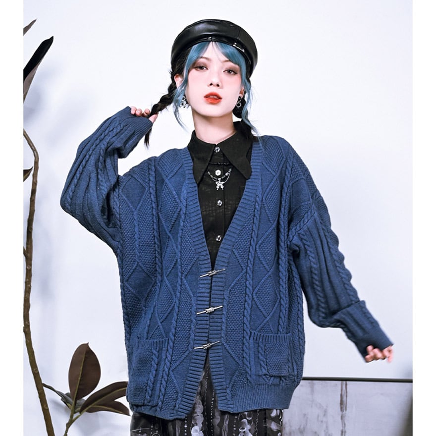SEASONZ 古怪舎 チャイナ服 長袖カーディガン ニット 羽織り セーター Vネック エレガント 普段着使い 大人増し