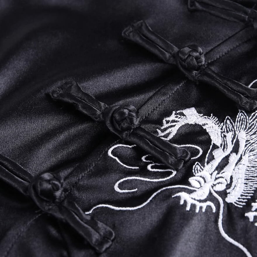 SEASONZ 地雷系 地雷女子 チャイナドレス スリット ドラゴン 半袖 スリム ダークファッション 原宿スタイル