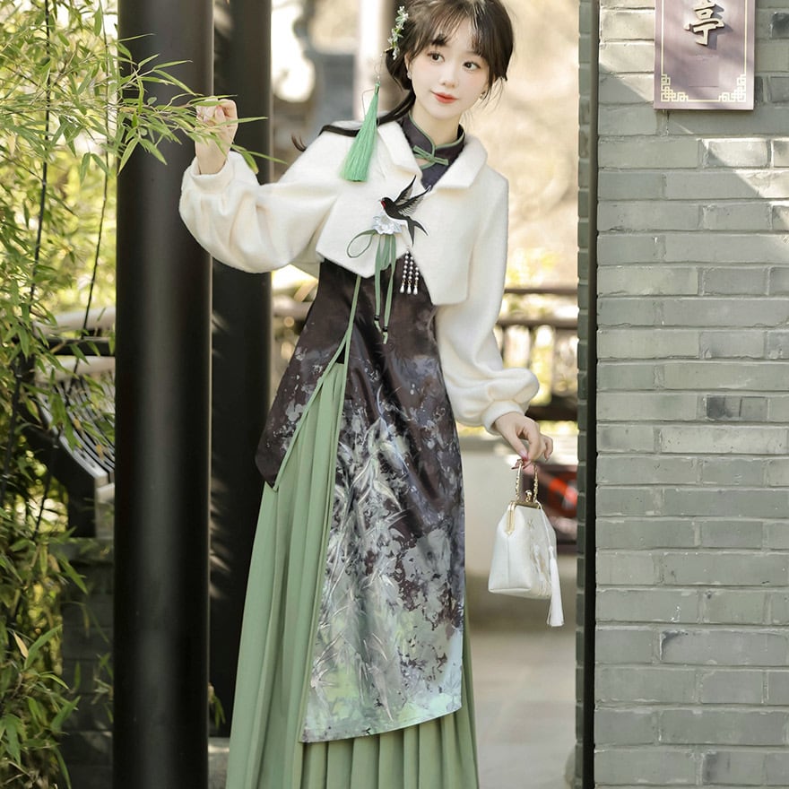ジャケットとトップスとスカートがセットになったチャイナドレスです。