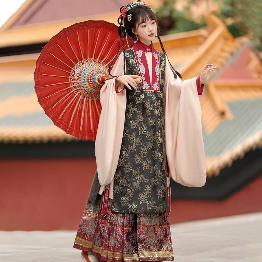 SEASONZ 中華ロリータ セットアップ 3点セット 羽織り 長袖シャツ スカート 民族風 刺繍 エレガント 個性的 量産型