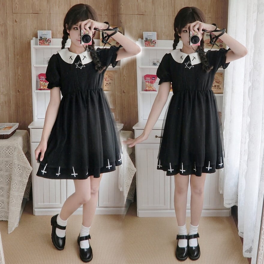 SEASONZ ワンピース 長袖 ロリータ初心者 ゴスロリ 五芒星 ダークファッション 病み可愛い プチプラ