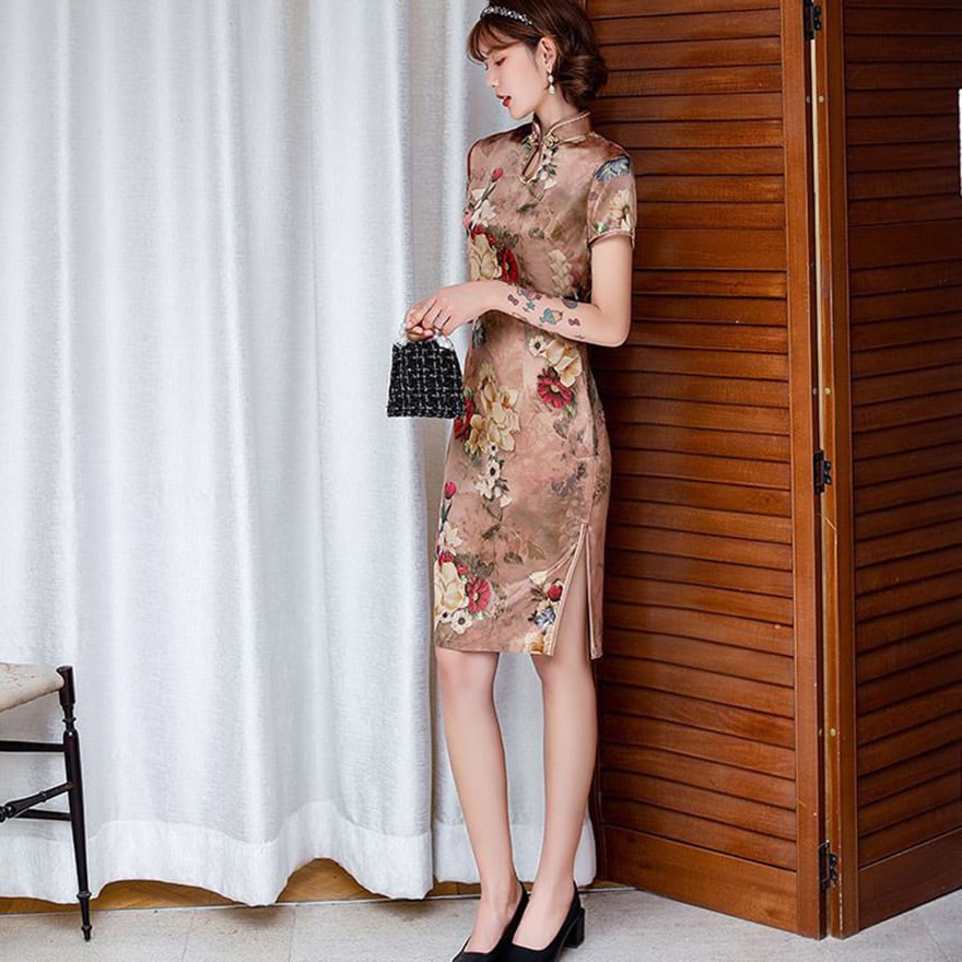 チャイナドレス スリット セクシー系 花柄 ダークファッション 原宿スタイル