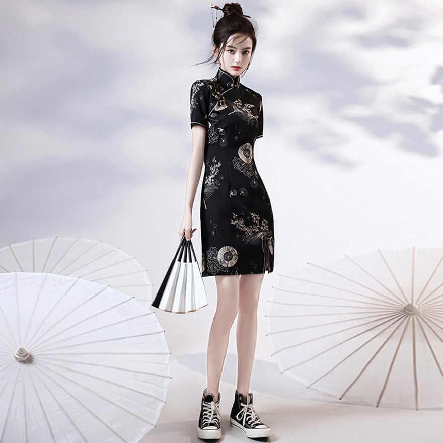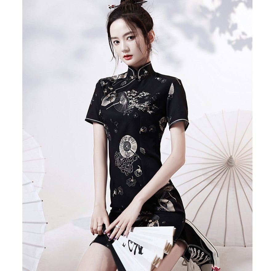 地雷系 地雷女子 チャイナドレス スリット レトロ 高級感 エレガント ダークファッション 原宿スタイル