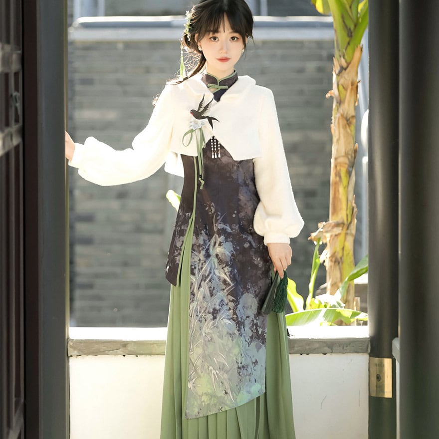 トップスとスカートがセットになったチャイナドレスのセットアップです。