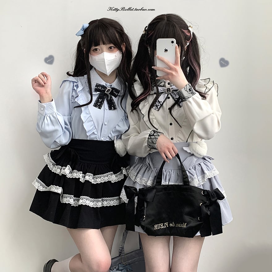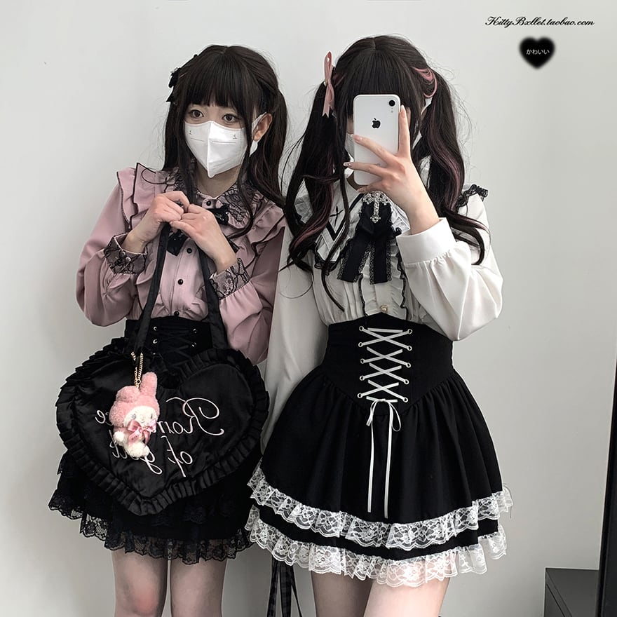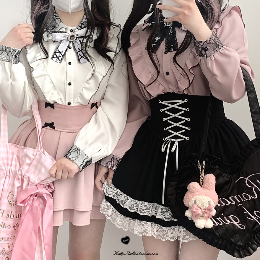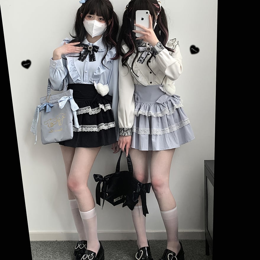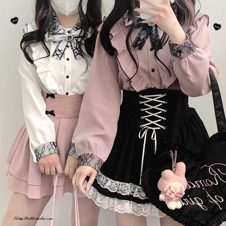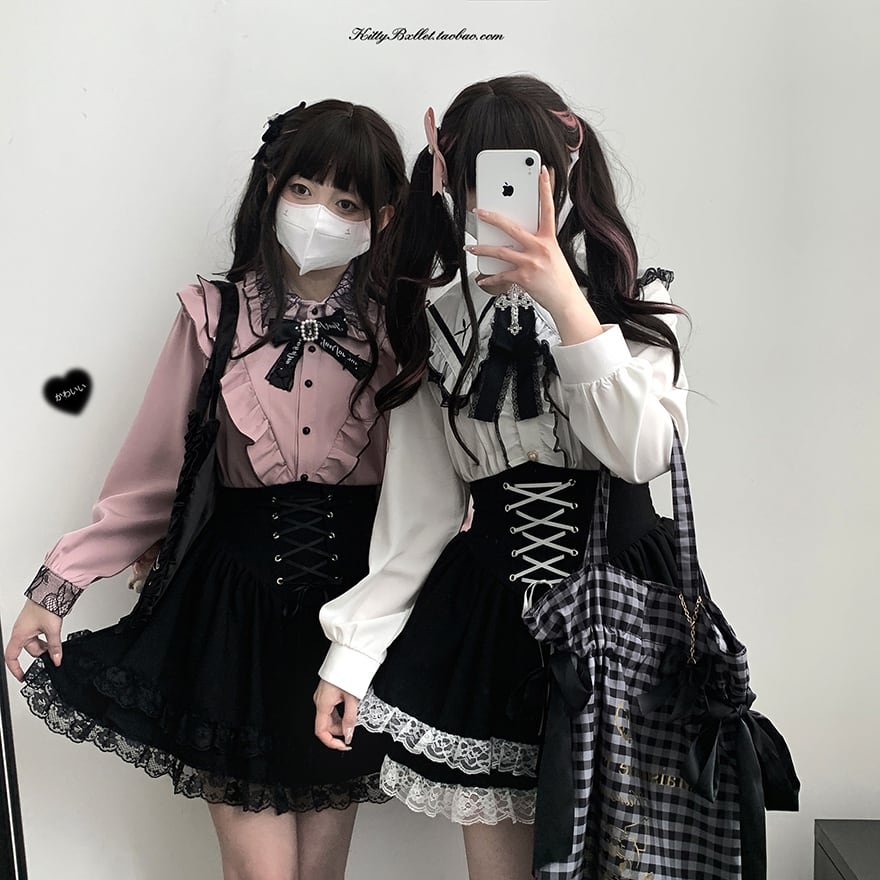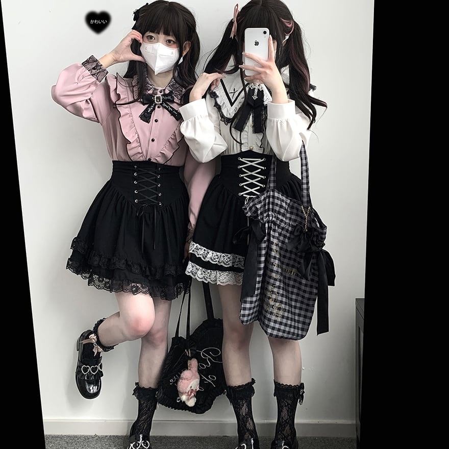 SEASONZ 地雷系 地雷女子 長袖シャツ ブラウス フリル リボン レース 量産型 ガーリー 量産型女子 双子コーデ 原宿スタイル
