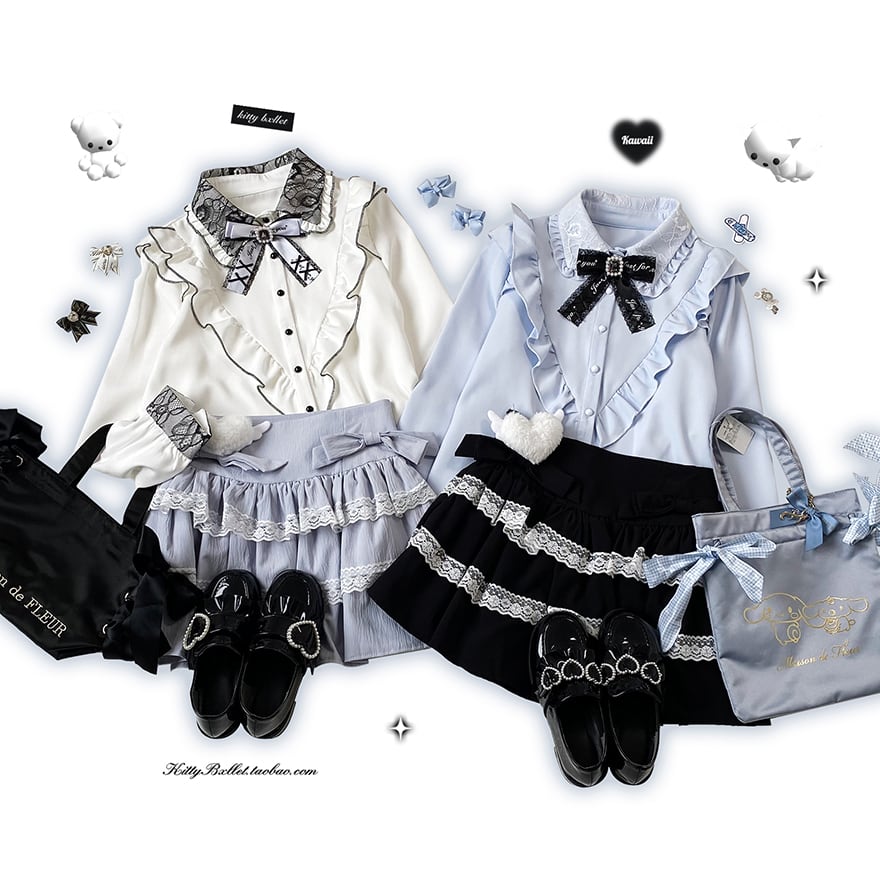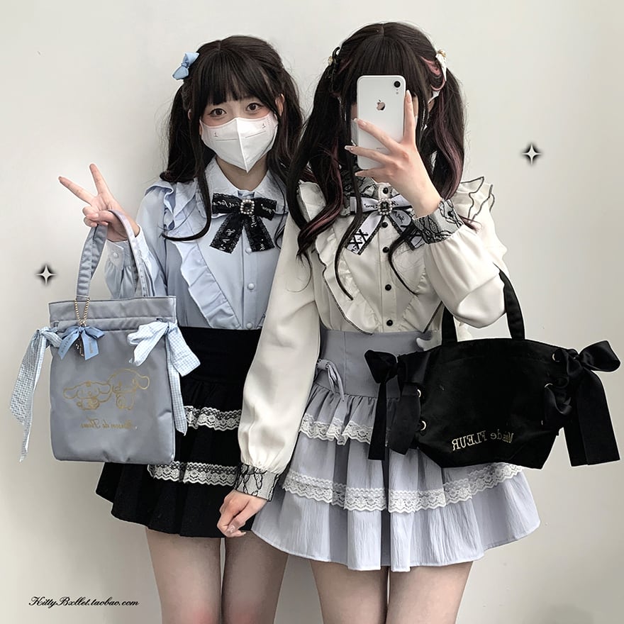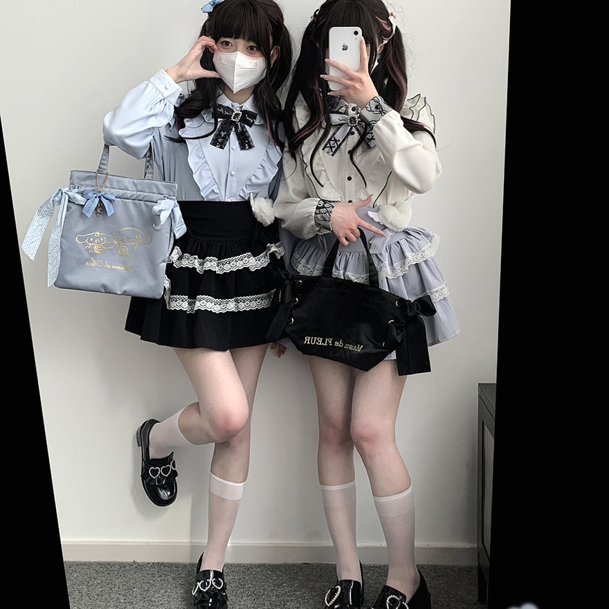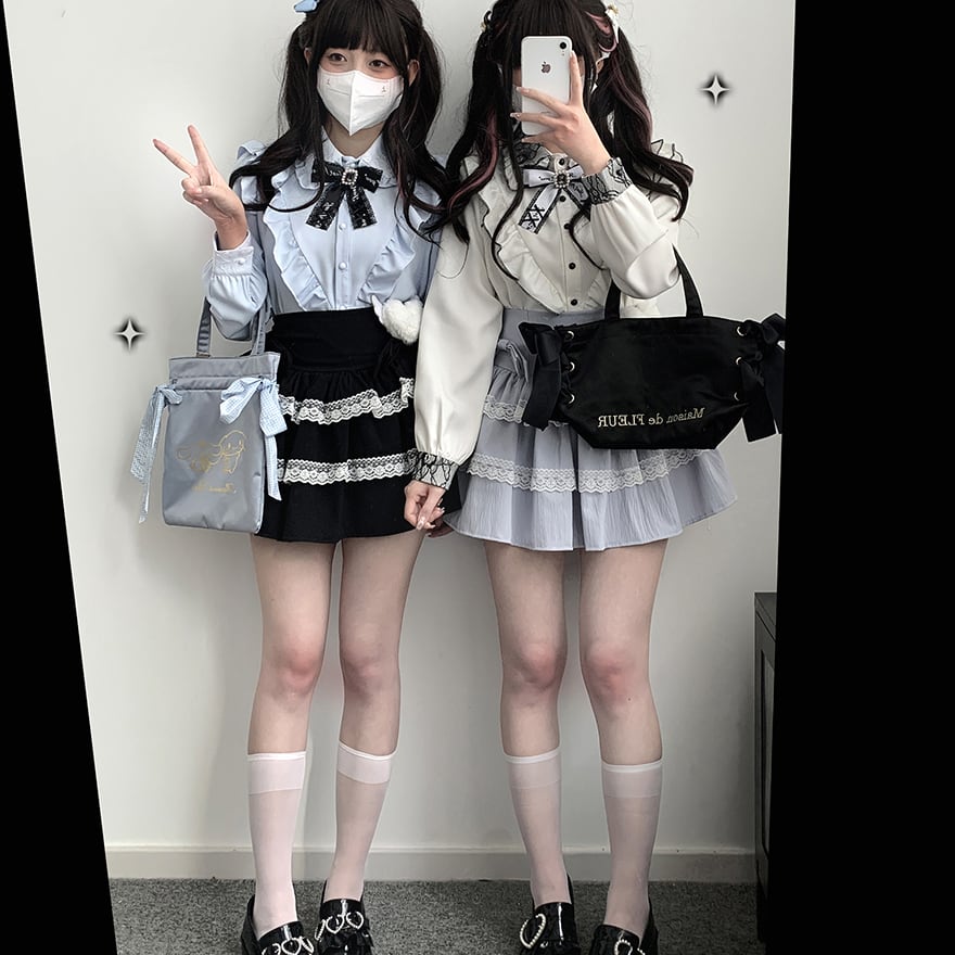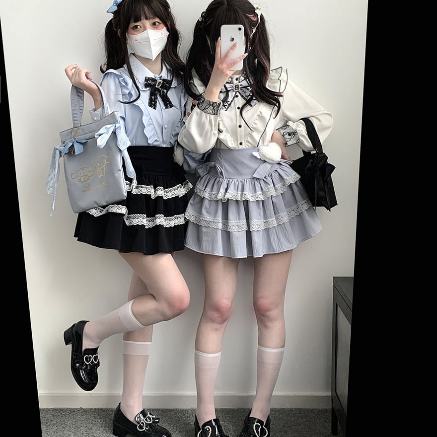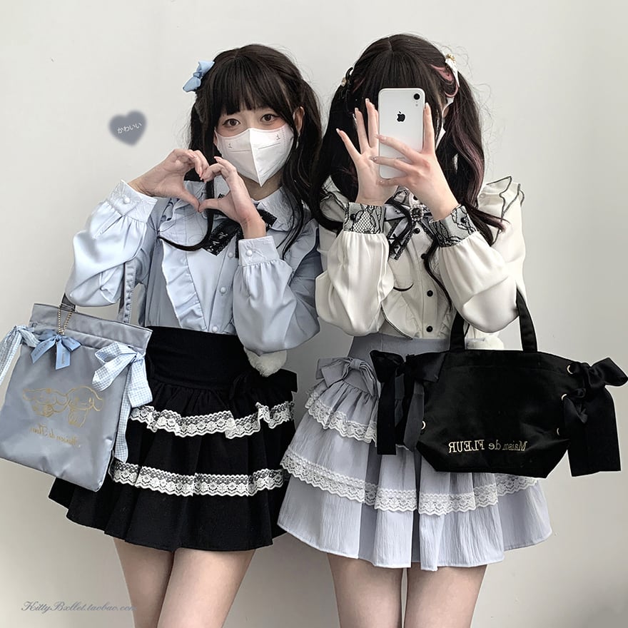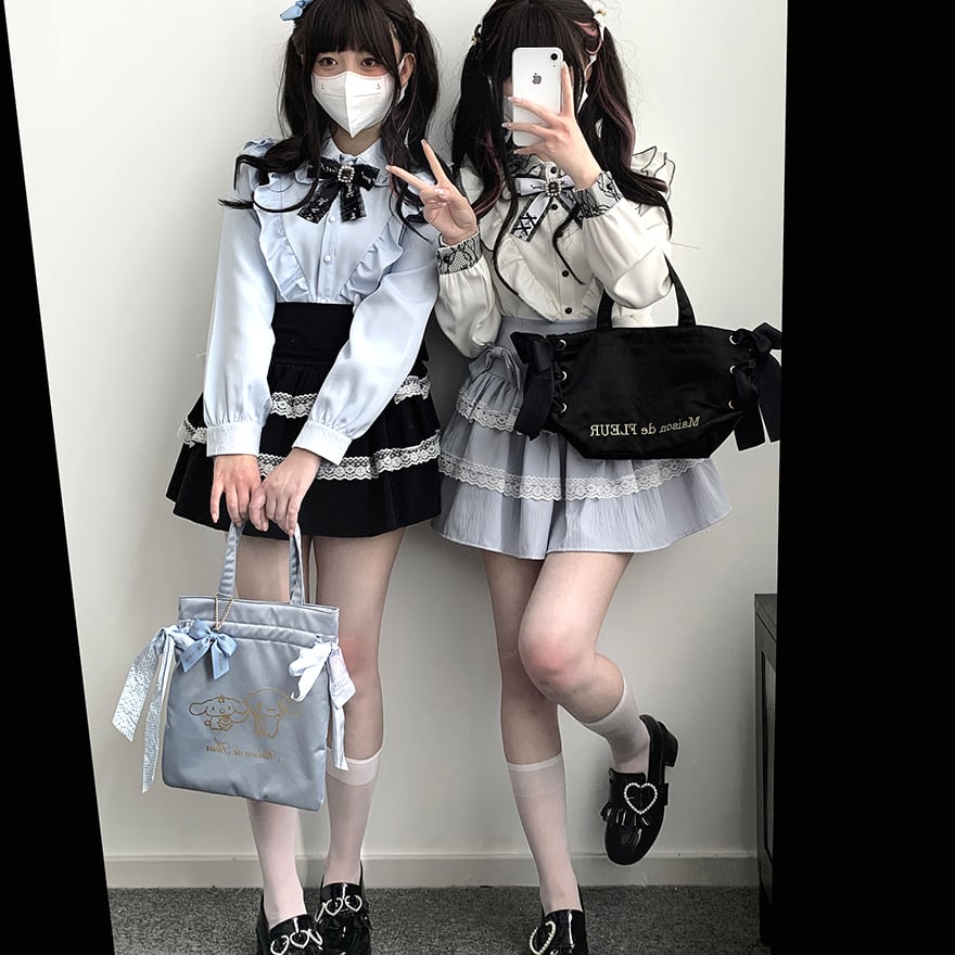 SEASONZ 地雷系 地雷女子 長袖シャツ ブラウス フリル リボン レース 量産型 ガーリー 量産型女子 双子コーデ 原宿スタイル
