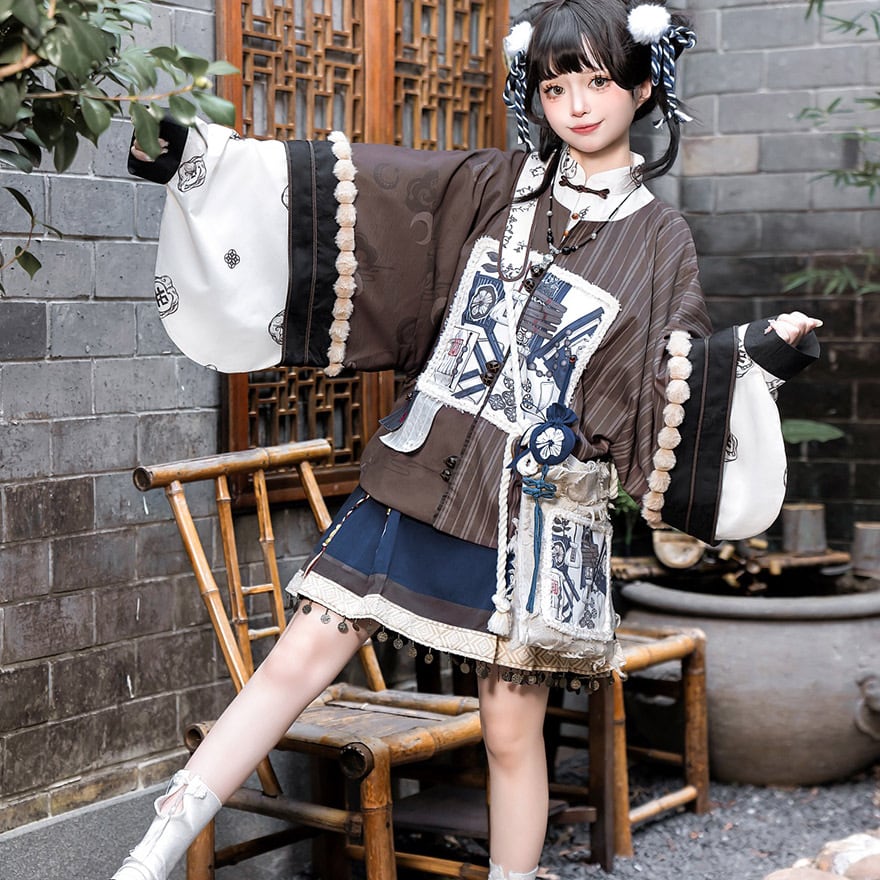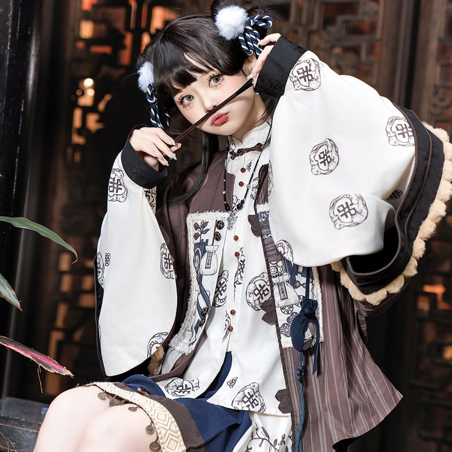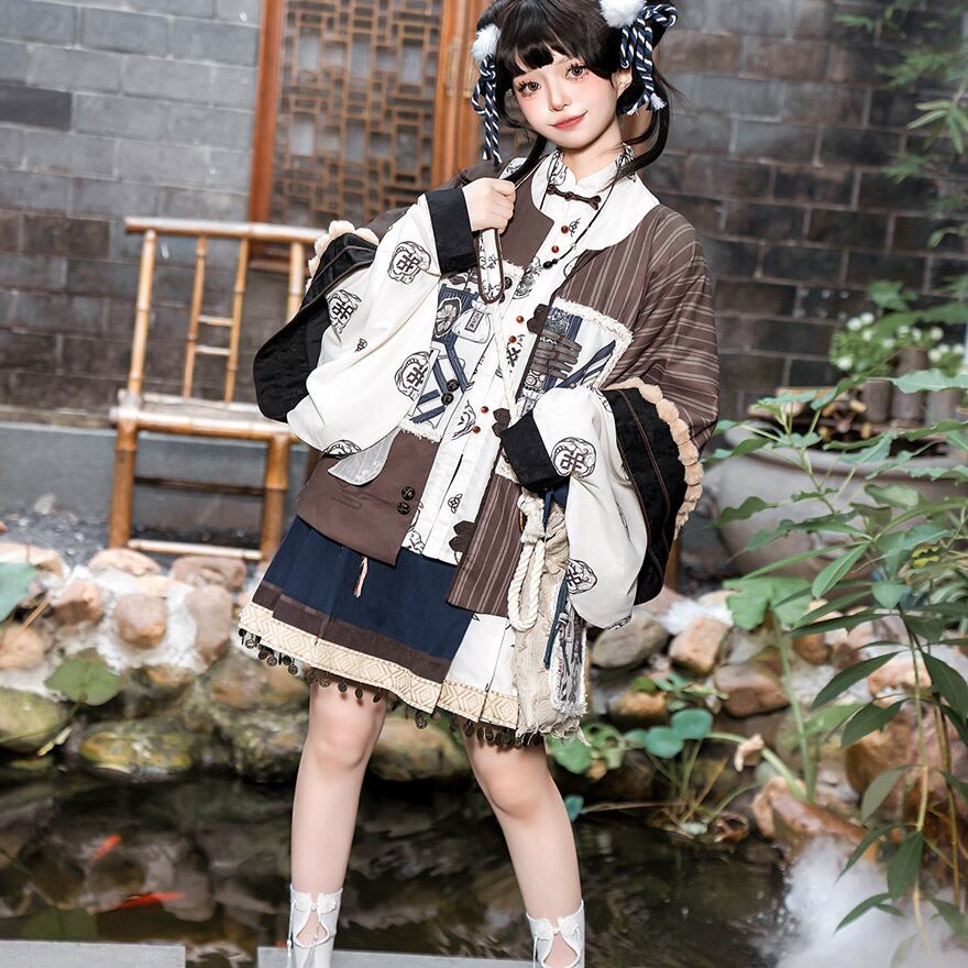 SEASONZ 羽織り シャツ スカート ショルダーバッグ 民族風 4点セット 華ロリ レトロ ベビードール 量産型