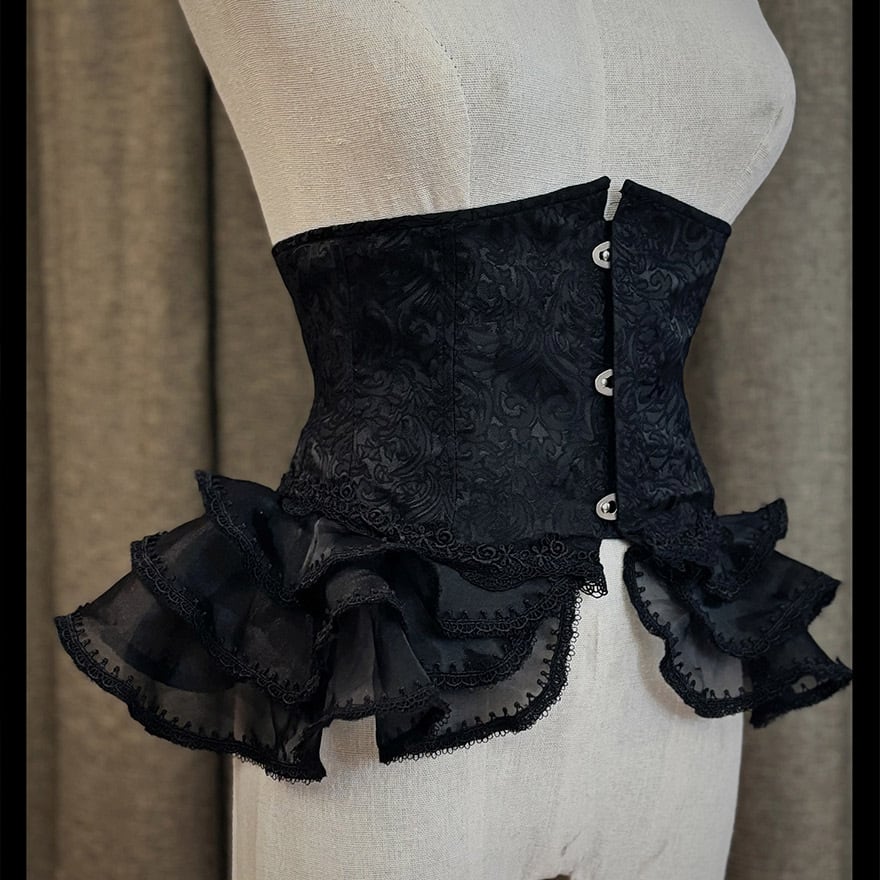 フィッシュボーン風のレースとダークな雰囲気がお洒落なコルセットです。