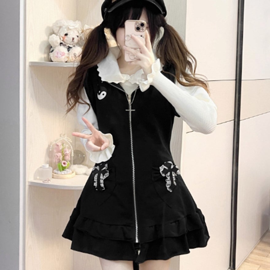 SEASONZ ベスト ノースリーブパーカー 猫耳フード 羽織り JKロリータ カジュアル 普段着使い ベビードール