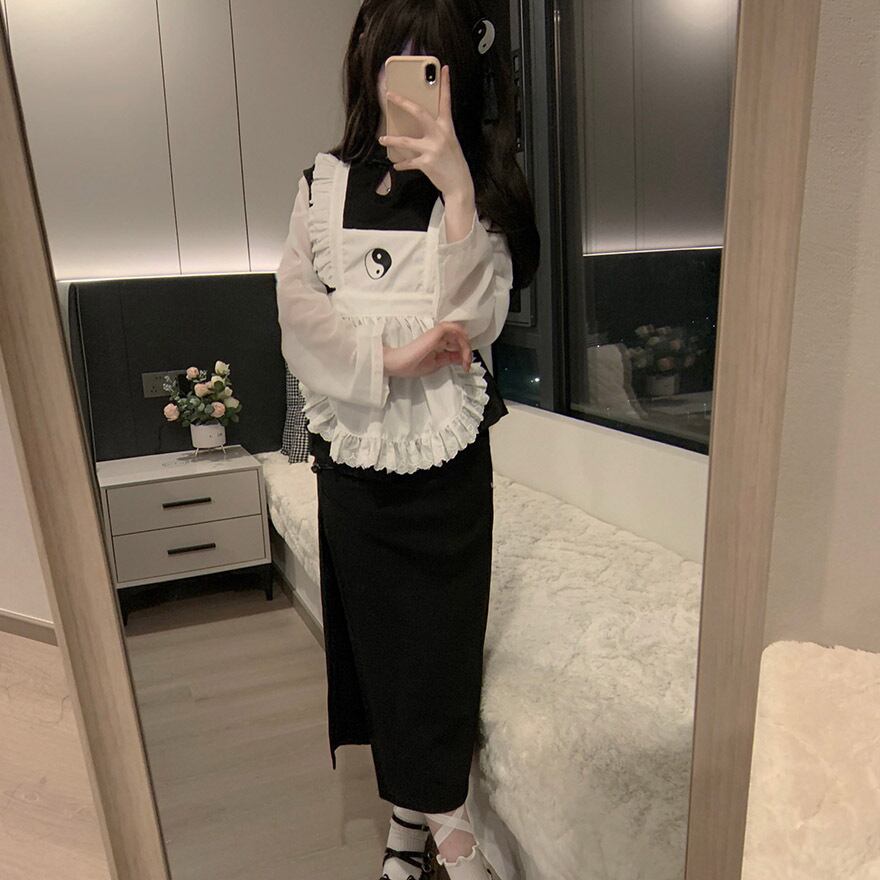SEASONZ チャイナドレス スリットスカート メイド服 エプロン メイドワンピ セットアップ エプロン ベビードール メイドカフェ コンカフェ