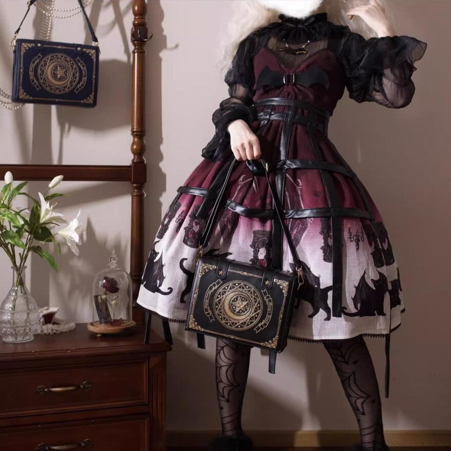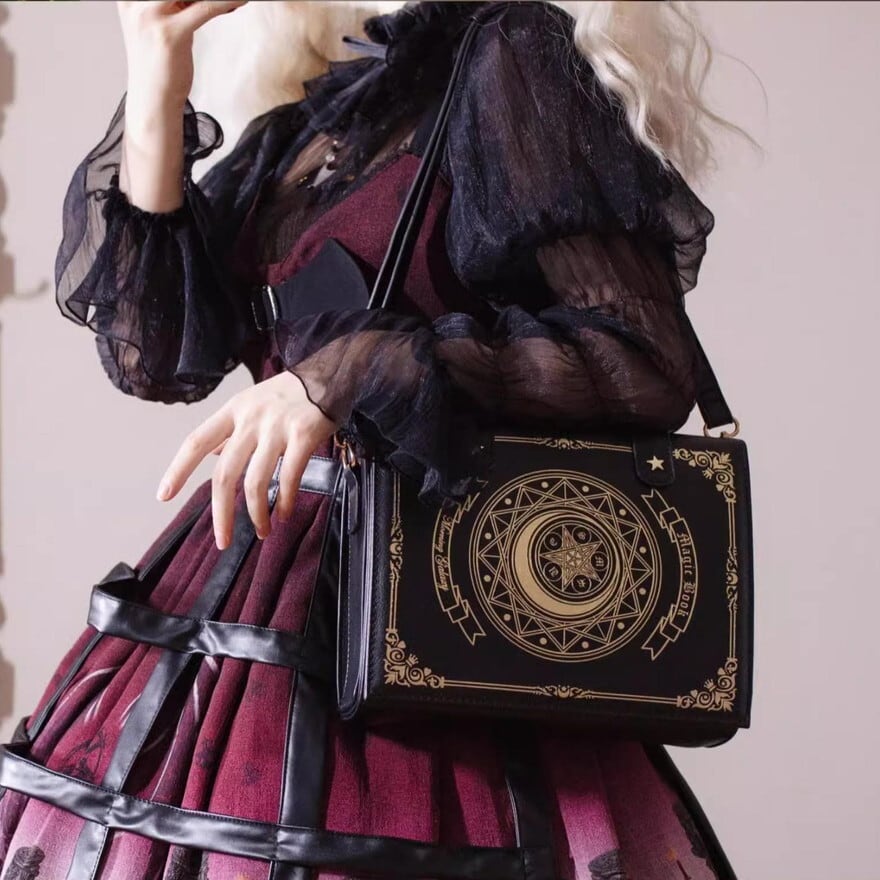 ブック型フォルムに星月のゴシックなデザインがおしゃれなショルダーバッグです。