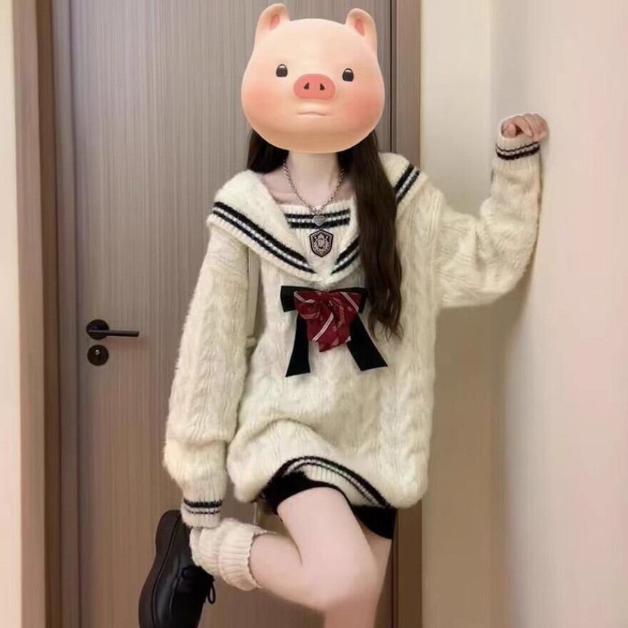 鉄板のケーブル編みのセーラー服風ニットです