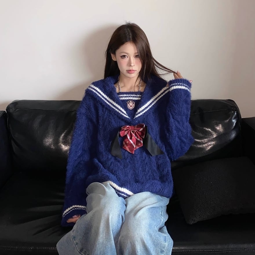 SEASONZ ニット セーター 秋冬 セーラー服風 JKロリータ ケーブル編み